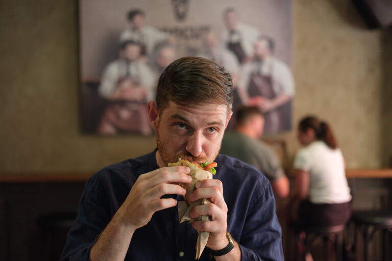 Do you eat souvlaki sitting down?
